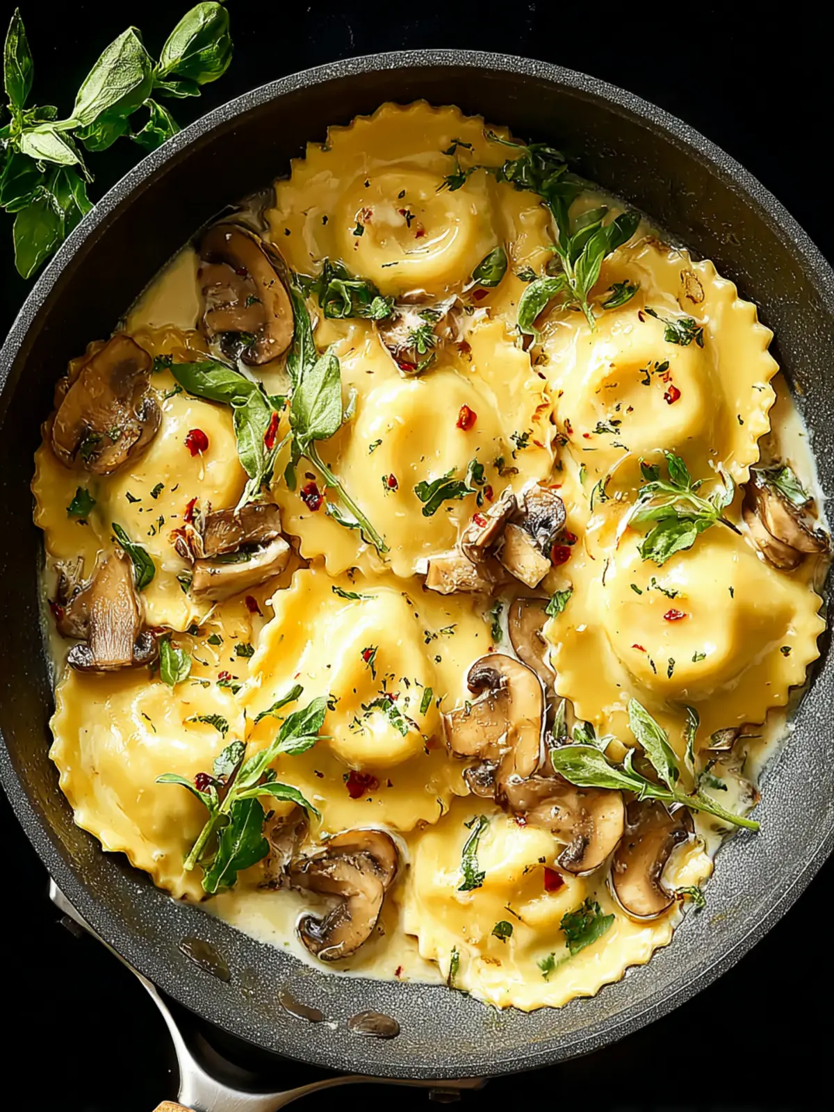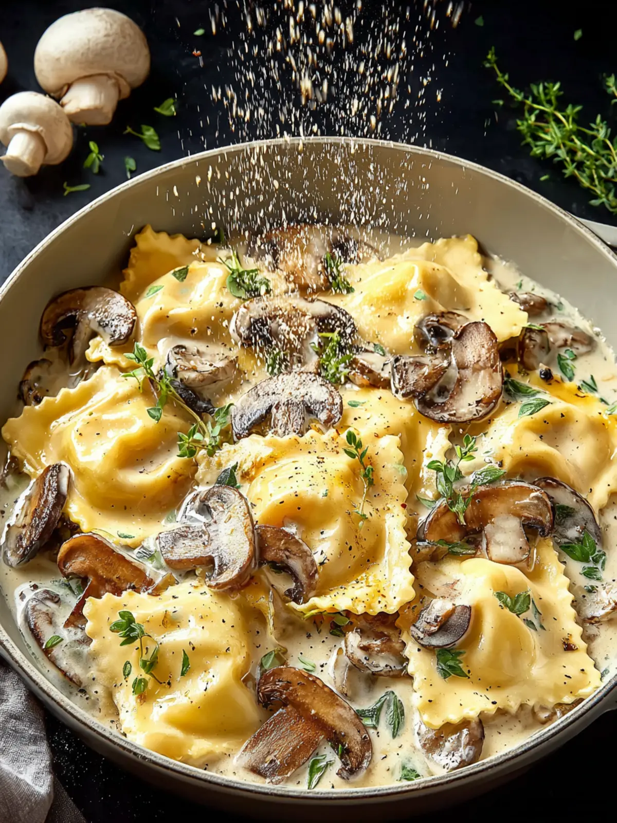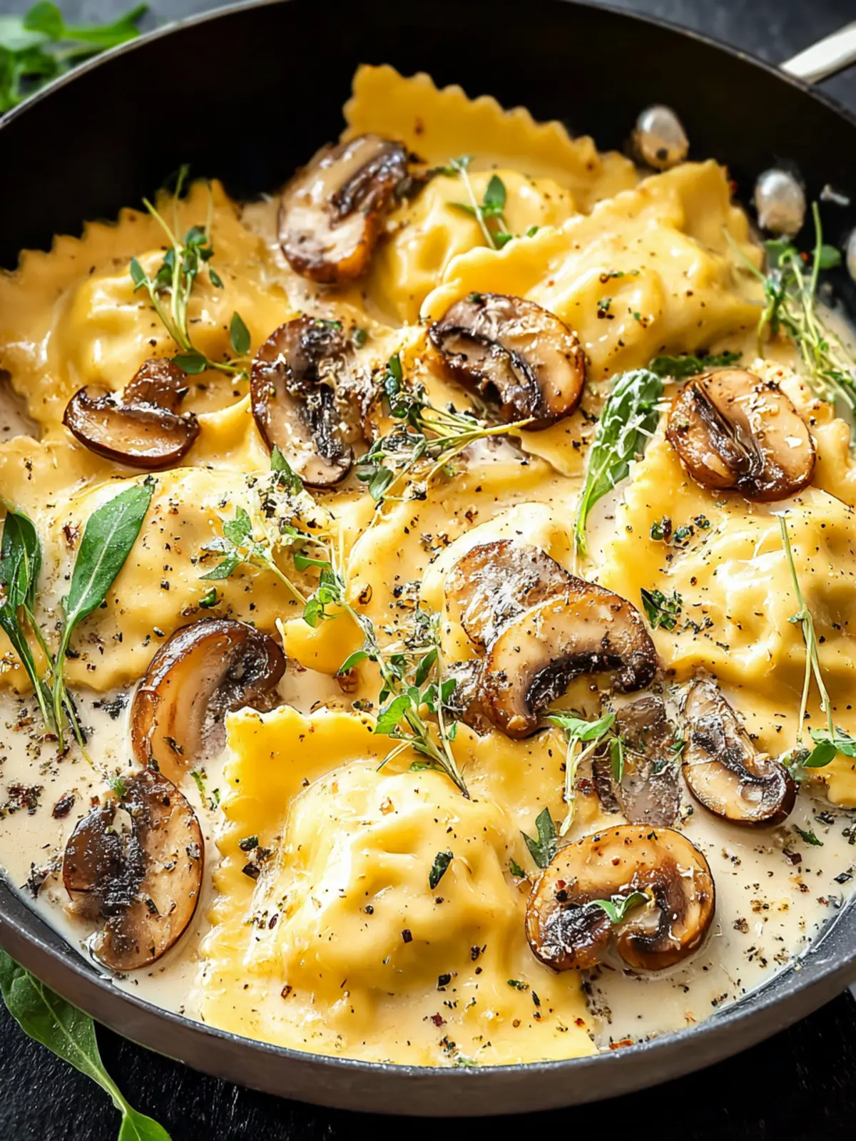 Mushroom-Filled Ravioli in Cream Sauce