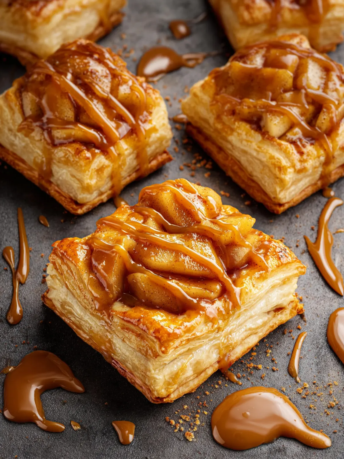 Delicious apple danishes filled with custard and dulce de leche, perfect for a dessert or snack.