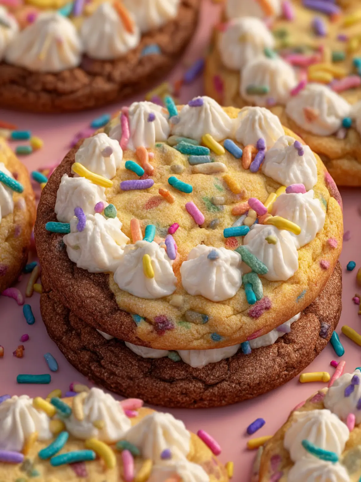 Decadent Flavors: Imagine sinking your teeth into a soft, chewy cookie with cake batter and vanilla infused throughout. Topped with colorful sprinkles, these cookies look as good as they taste, making them the star of any gathering.