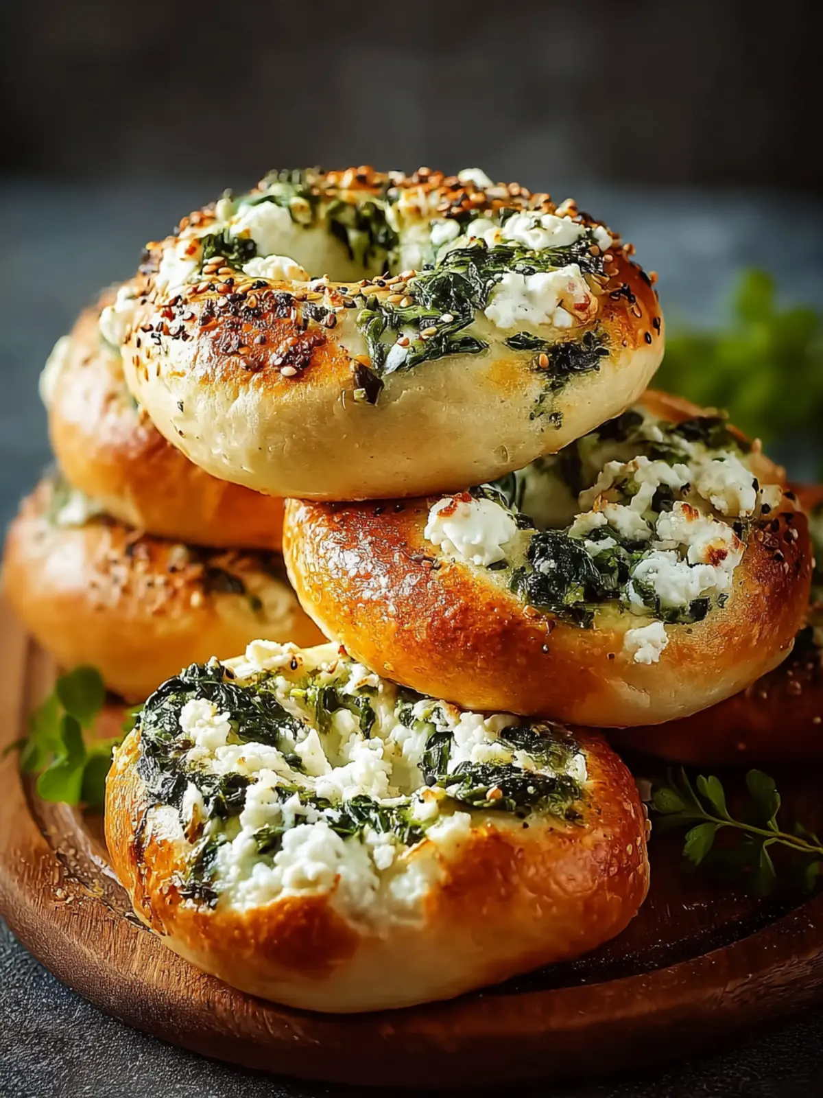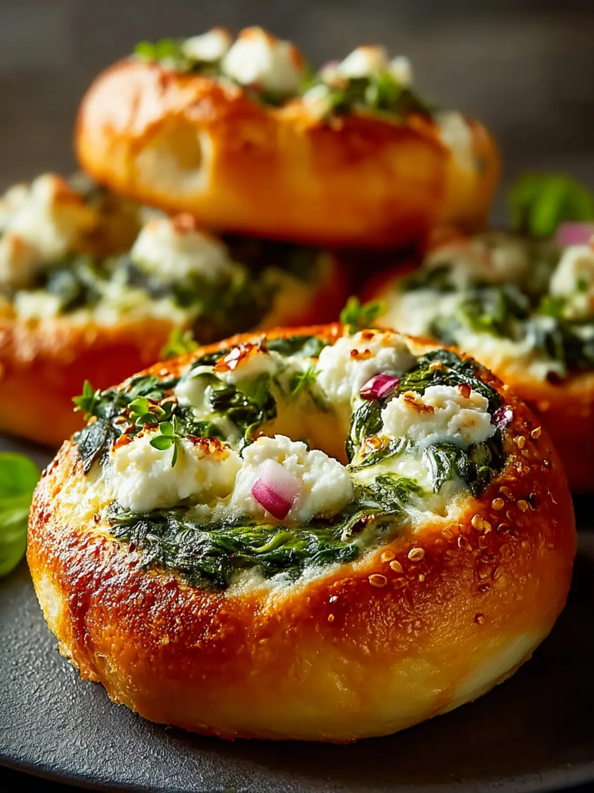 Delicious cheesy bagels packed with spinach, perfect for a healthy snack or breakfast.