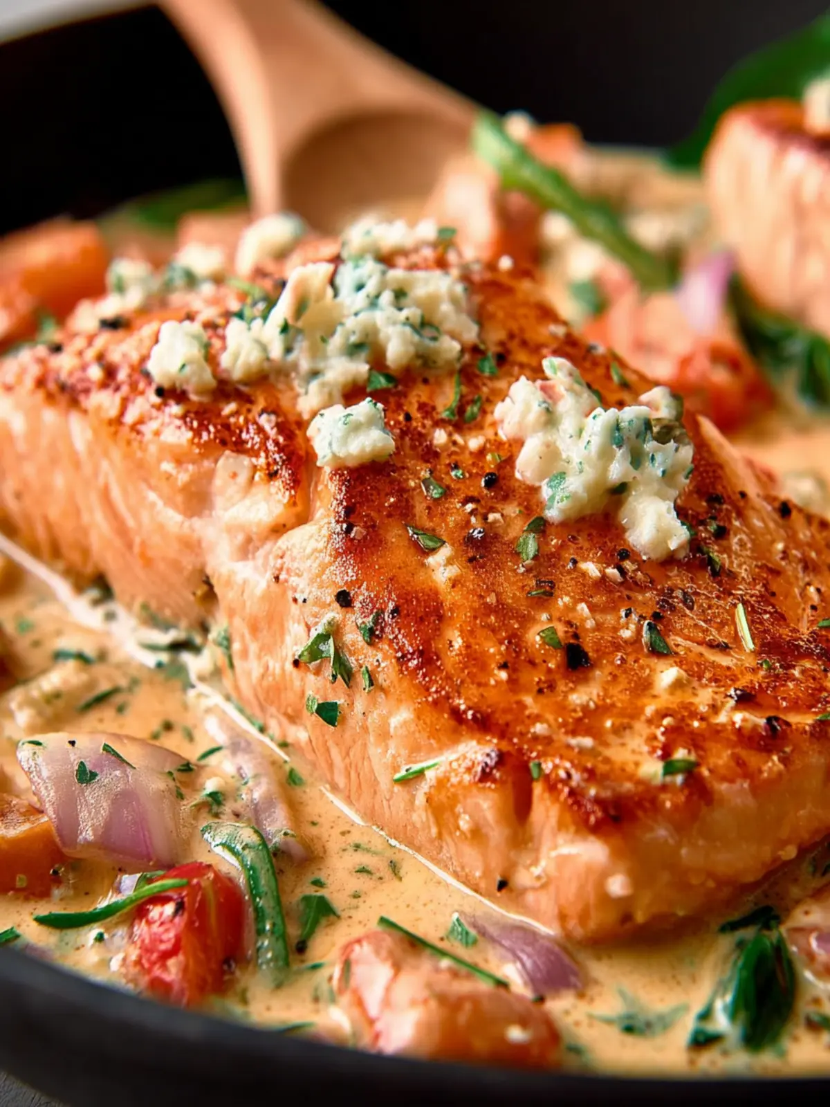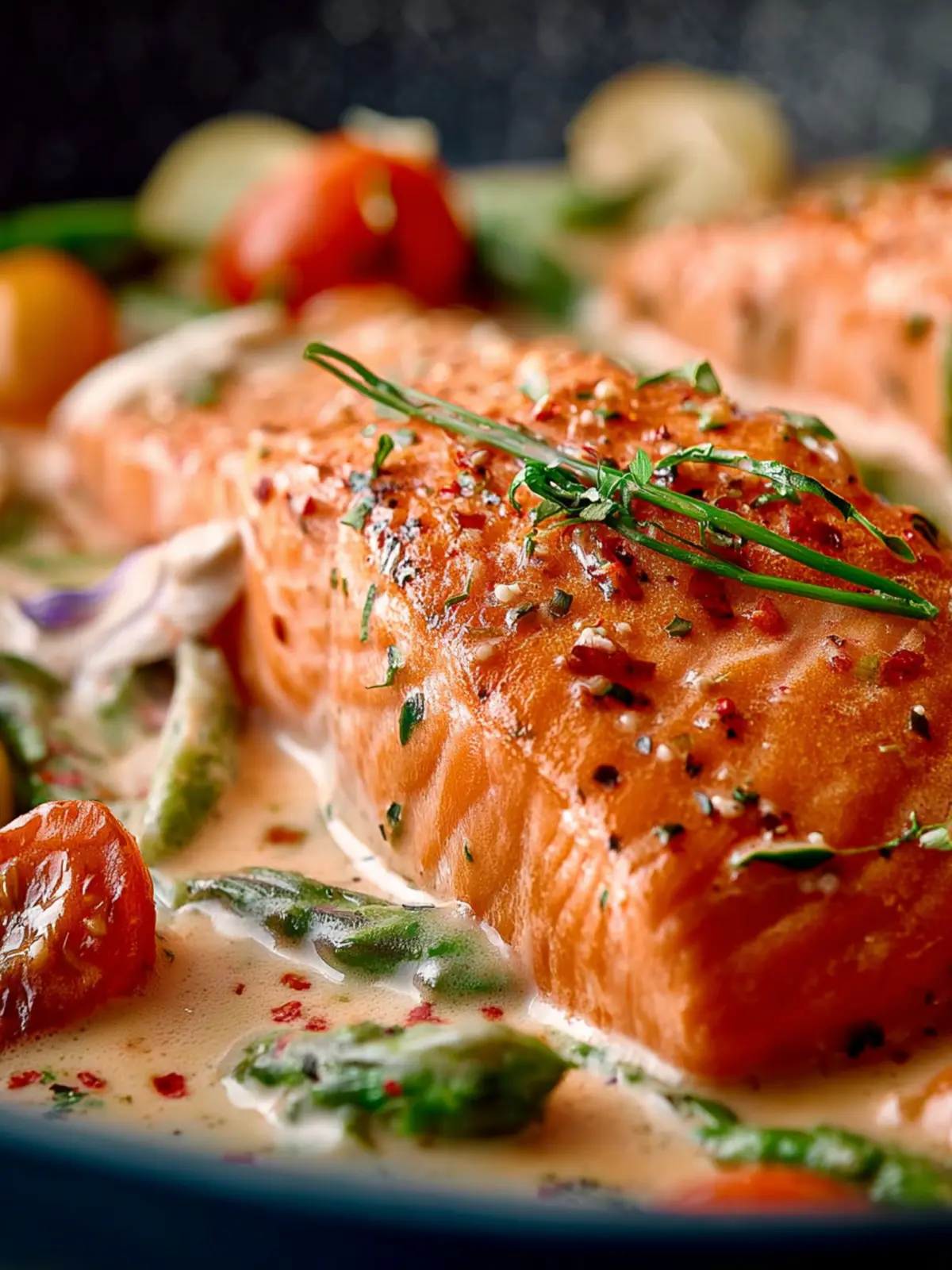 Versatility: While salmon takes center stage, the dish can easily adapt to seasonal ingredients or dietary preferences. Want to swap out salmon for another fish or even chicken? Go for it! The sauce is so versatile that it works well with other proteins too.