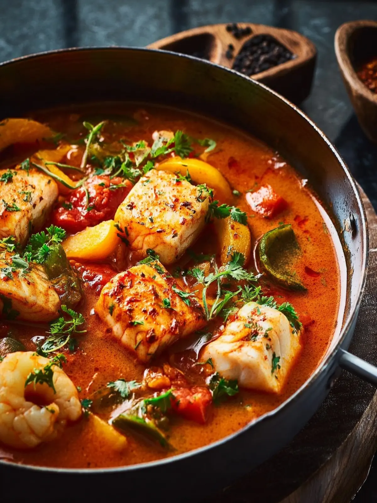A delicious and fragrant coconut fish stew made with a variety of fresh ingredients.