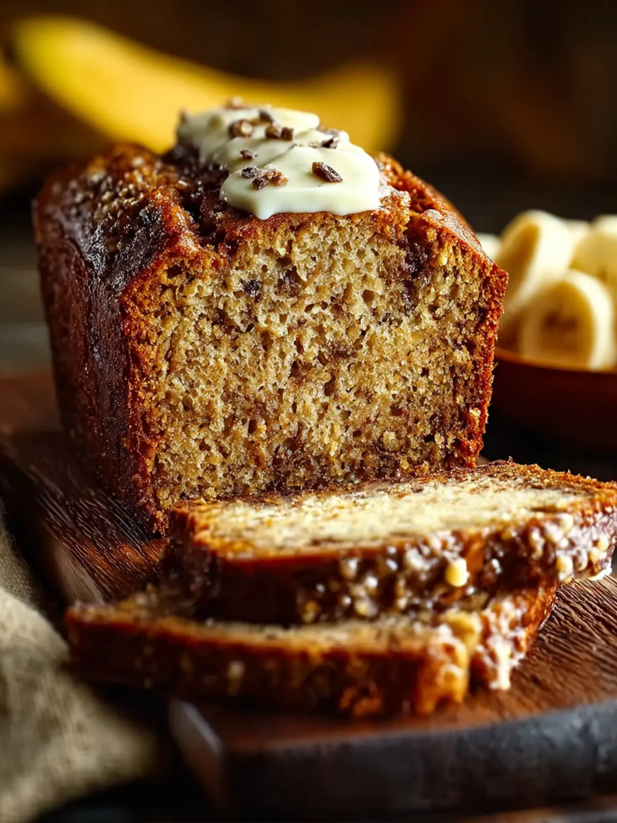 Warm and Cozy: Serve your banana bread warm from the oven, spreading a generous pat of butter over each slice for that buttery richness that enhances the moistness.