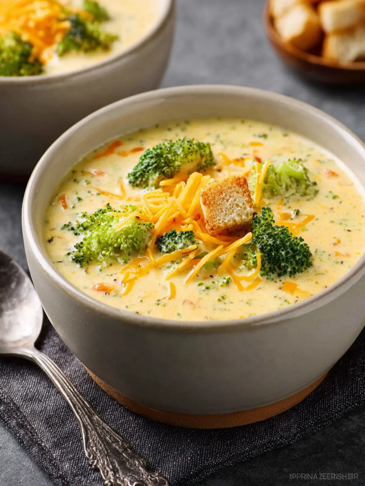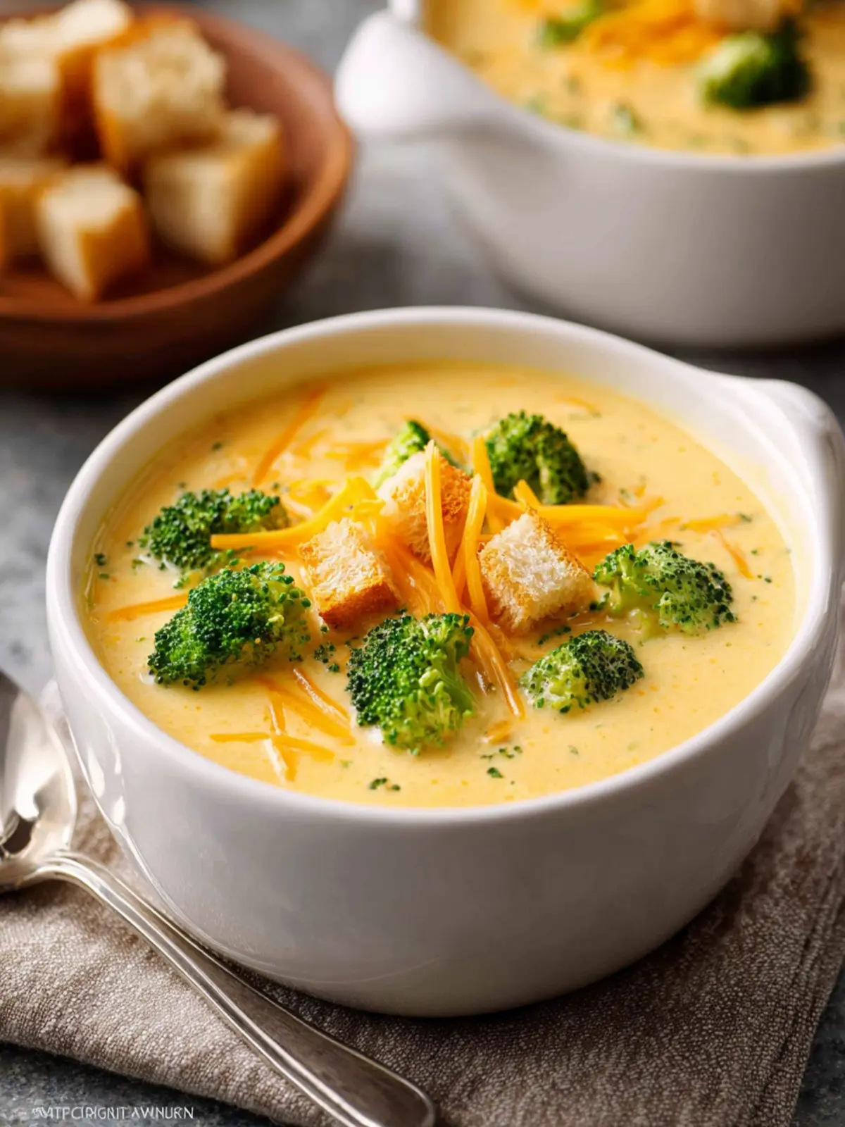 Warm Toasted Sandwich: Pairing your soup with a toasted grilled cheese or turkey club elevates it to a full meal. The melted cheese and crispy bread blend beautifully with the creamy broccoli cheddar.