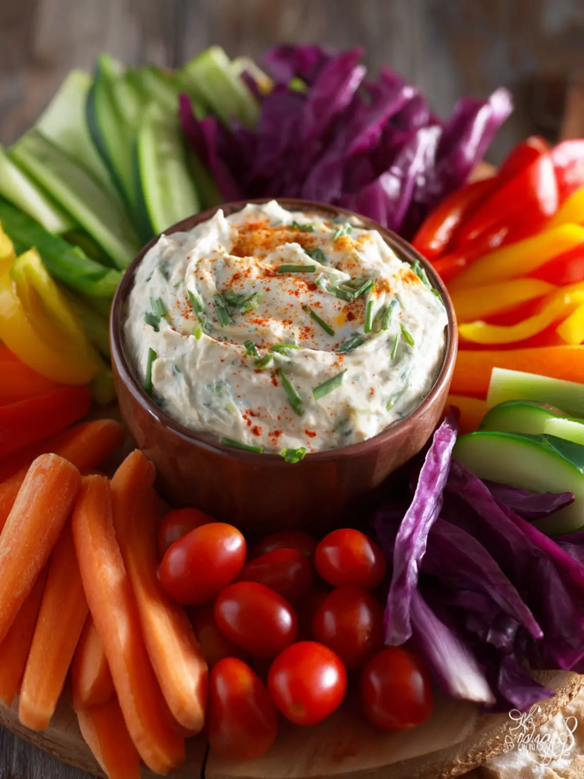 Feel free to get creative! The ultimate goal is to enjoy vibrant, healthful veggies alongside your delicious dip. Happy dipping!