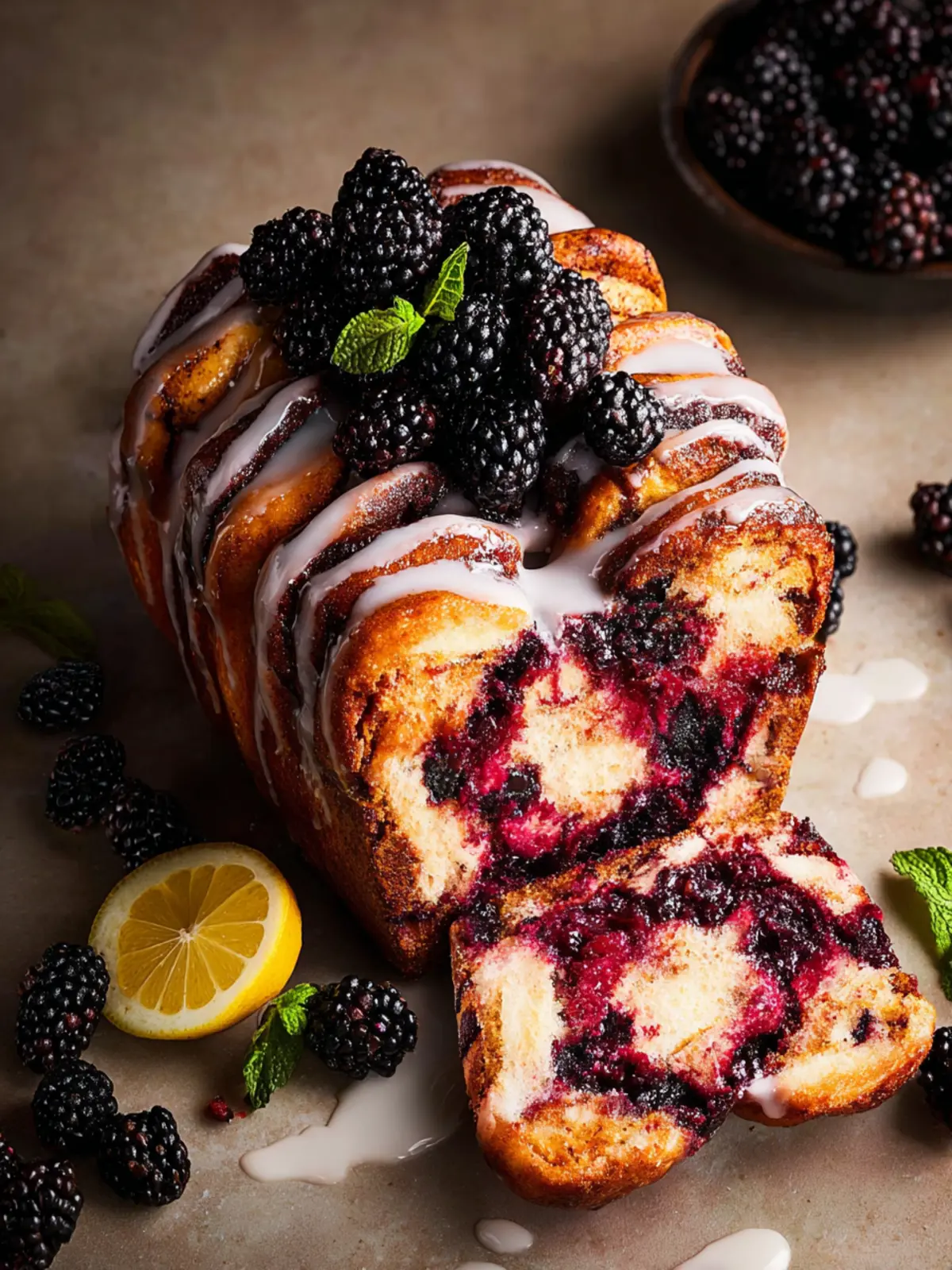 This delicious roasted blackberry lemon pull apart bread is perfect for brunch or dessert, combining warm, soft bread with tangy blackberries and a sweet lemon glaze.