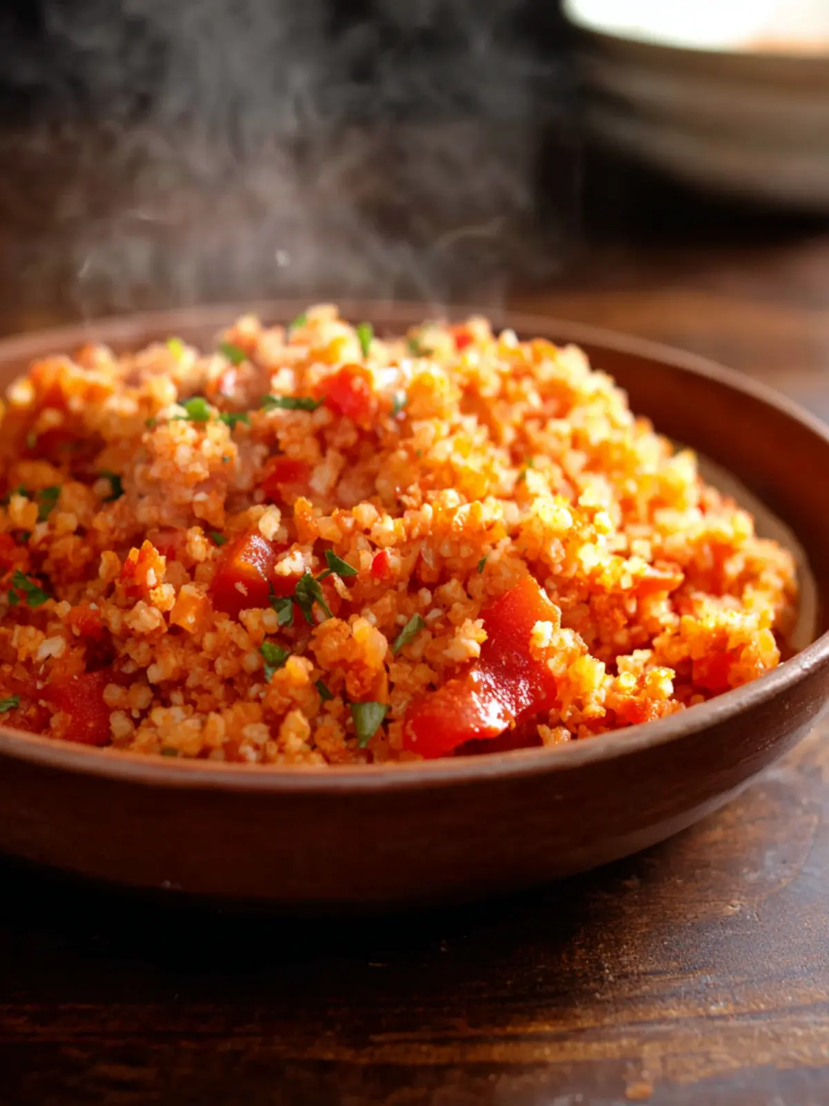 Pair with Grilled Chicken or Shrimp: The spicy notes of the cauliflower rice complement the smoky flavors of grilled marinated chicken or shrimp beautifully. A squeeze of fresh lime brings brightness to the dish.