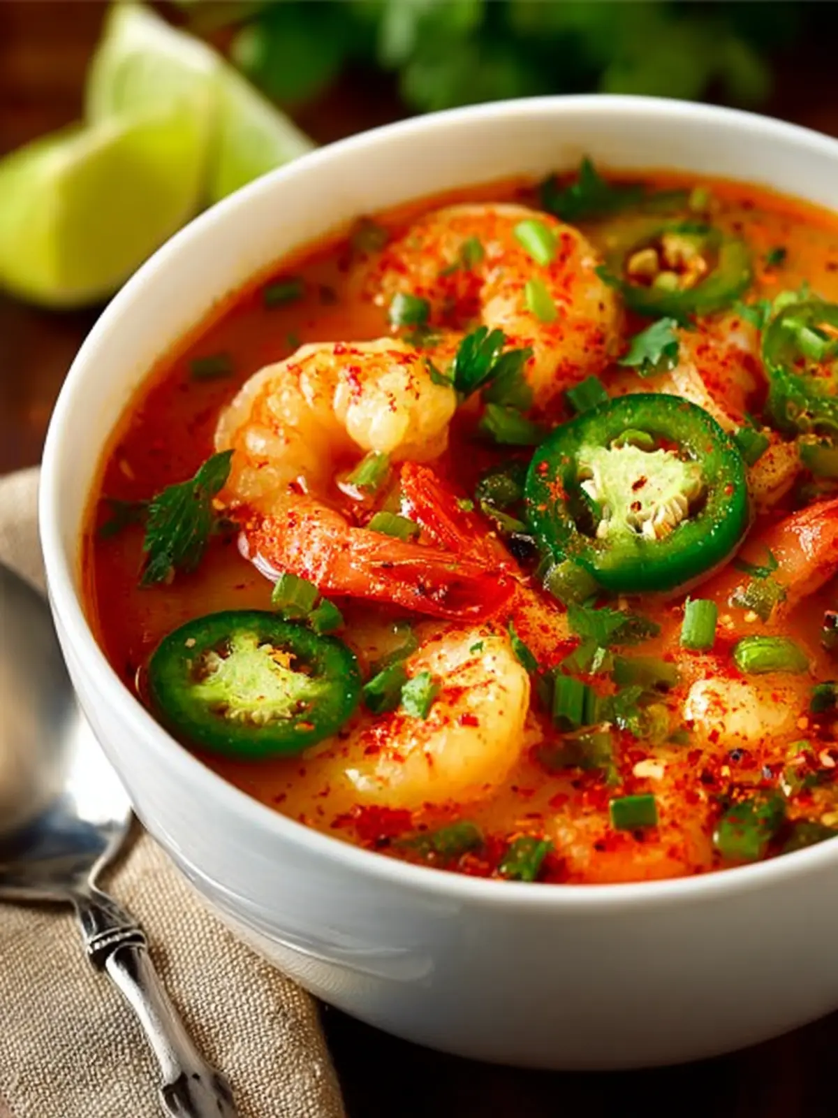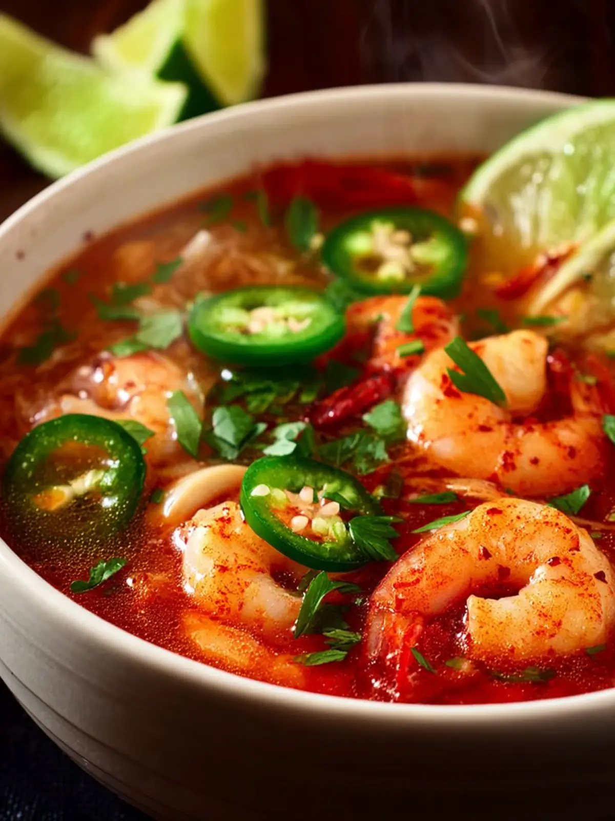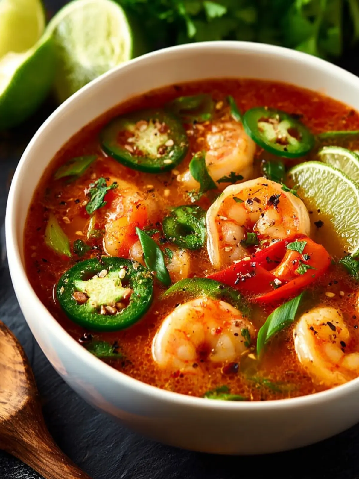 A delicious and hearty seafood soup made with shrimp, jalapeños, and a flavorful broth.