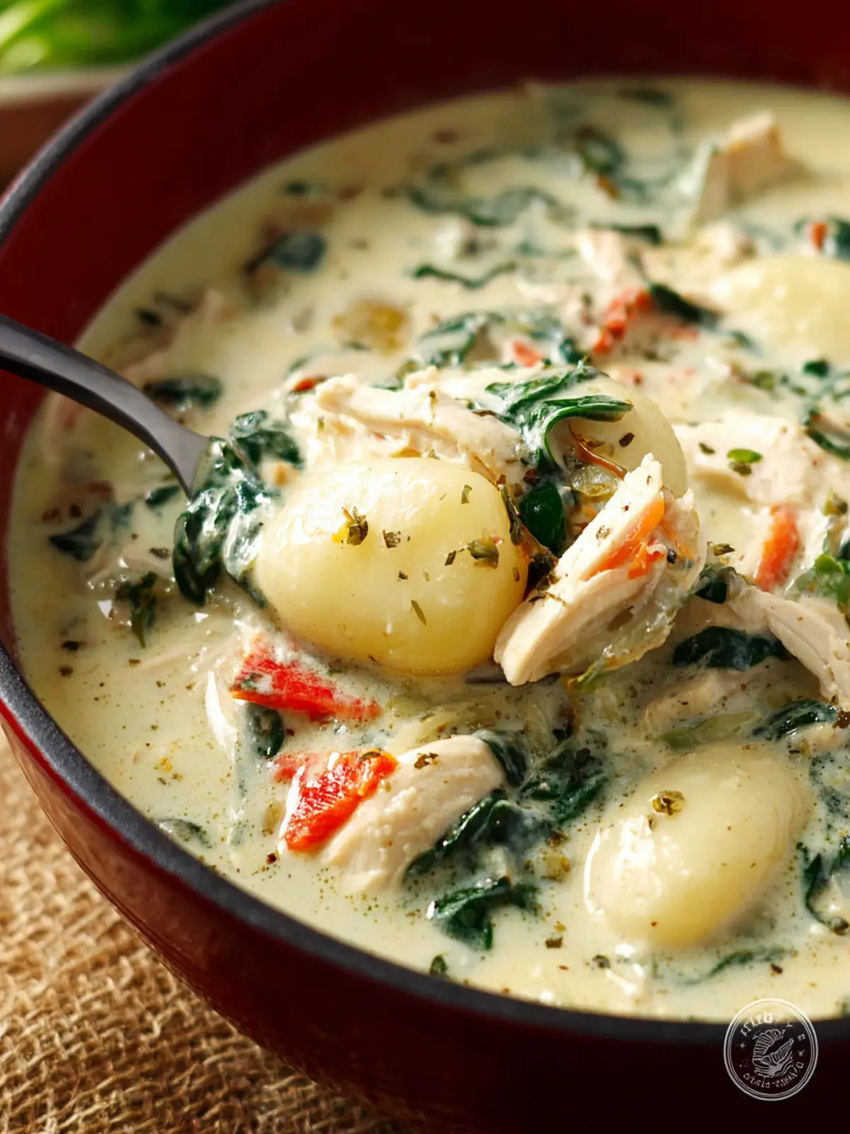 This creamy chicken gnocchi soup is a comforting dish packed with tender chicken, vegetables, and flavorful gnocchi.